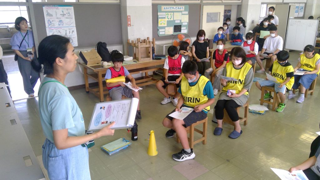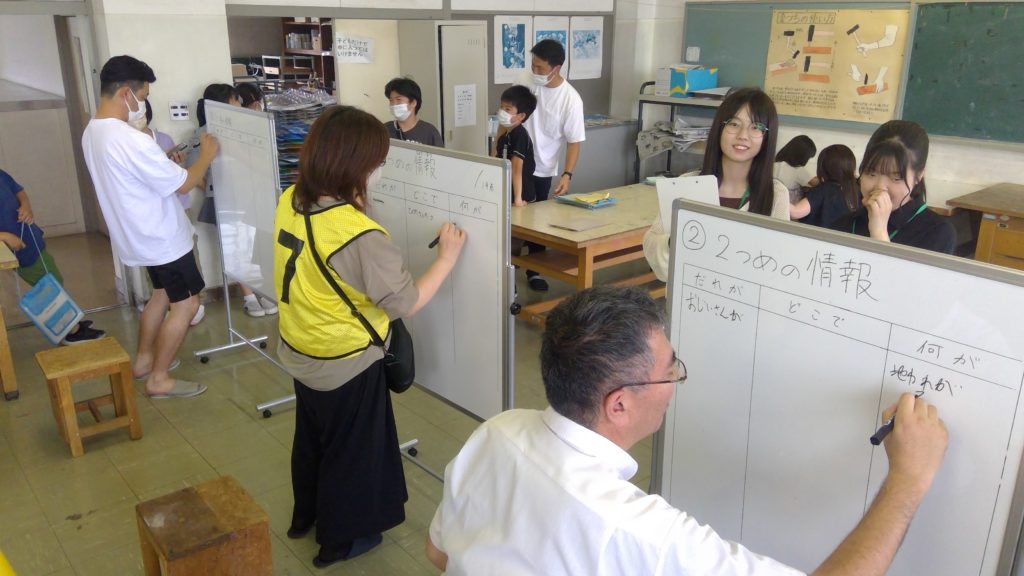 311いのちを守る教育研修機構(防災教育研修機構)が運営する311ゼミナールの新年度の活動が本格的に始動しています。7月12日には石巻市の開北小学校が校内で開いたイベント「防災チャレンジデー」に参加し、ゼミ有志の学生6人が災害情報を伝え合うゲームを実施して、児童や保護者に災害時の情報のやりとりの大切さを呼び掛けました。