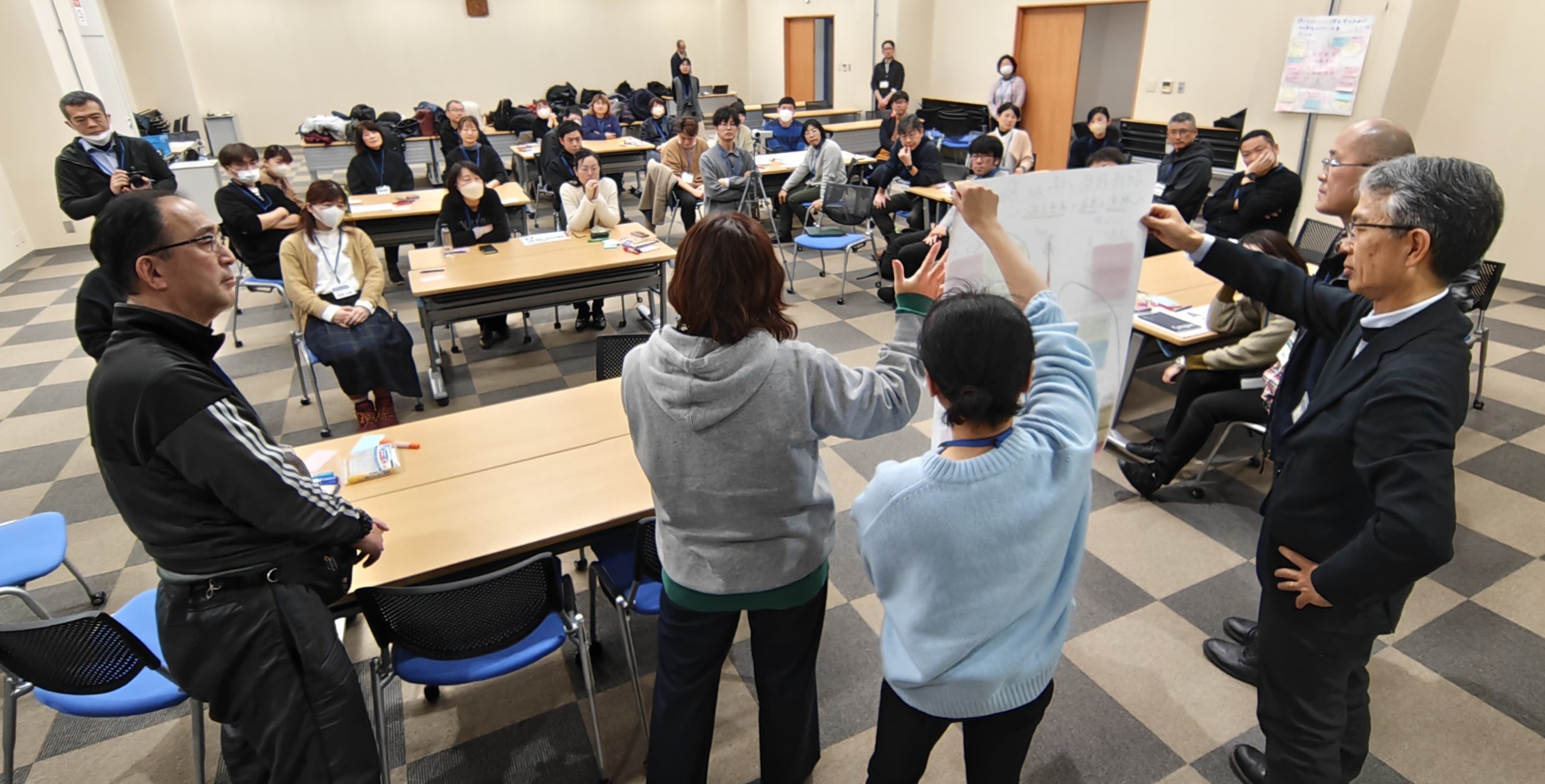 ワークショップなどで防災教育に取り組む姿勢、学校現場の災害対応の教訓、「ともに生き抜く力」を育む教育の要点を共有しました。終了後のアンケートでは、回答があった33人中32人が「期待以上だった」、1人が「期待通りだった」と答え、成果を所属先や地域に伝える役割を誓いました。
