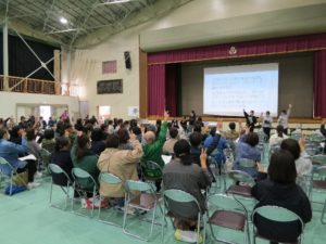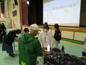 10月23日(木)には、身近な防災対策をテーマに泉館山高校PTA行事が行われました。高校生の防災ジュニアリーダーが内容を企画・立案・運営し、311ゼミナールの学生は当日の手伝いをする役割で参加しました。はじめに地震を想定した防災クイズを行いました。発災時の様々な場面ごと(食事の調理中や就寝中、入浴中、エレベーター搭乗中など)に、どのような行動をとるのが適切なのかをクイズ形式で確認しました。続いて、災害時の様々な問題点を身近なものを使って解消するアイディアを、実践しながら紹介しました。段ボールを使った「手作りトイレ」やペットボトルを使った「簡易ランタン」、尿素を使った「手作り保冷剤」、食パン袋を利用した「防臭袋」など7つのアイディアを紹介しました。参加された保護者の方は、紹介した学生の説明を興味深く聞きながら、なかには作り方や原理などを質問したり、メモをとったりする方もいました。参加した学生にとって、地域の一員であることを自覚し、社会から期待されたことに向き合い、自分に何ができるかを考え活動している防災ジュニアリーダー諸君の行動力や創造力等に大きな刺激を受けた活動になりました。